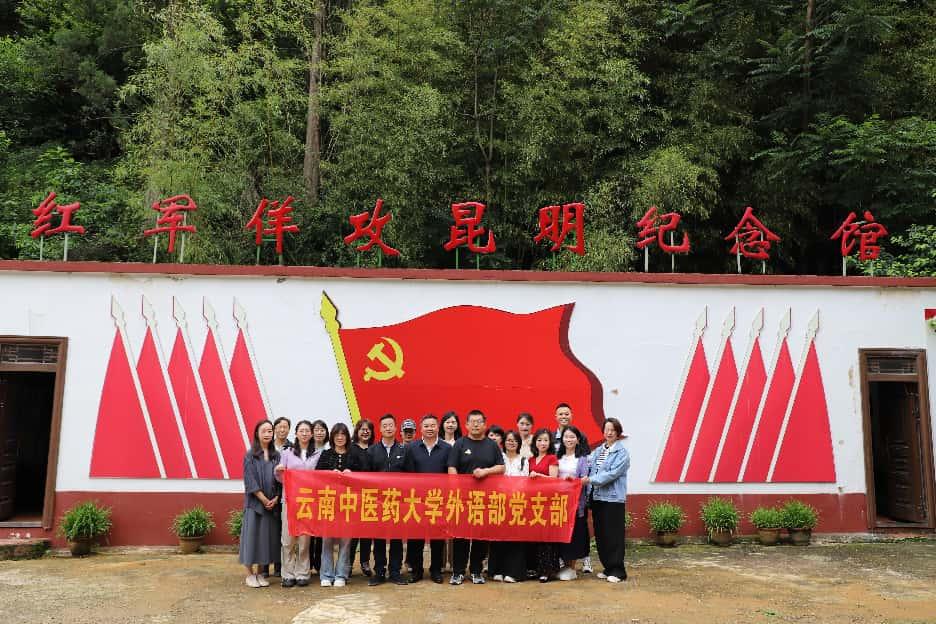 为庆祝中国共产党成立104周年,加强党支部的凝聚力和战斗力,提高党员的思想政治素质,创新党建活动形式,7月3日上午,外语部党支部组织全体教师前往昆明锡伯龙红色文化基地,开展“追寻百年足迹,凝聚奋进力量”主题党日活动。