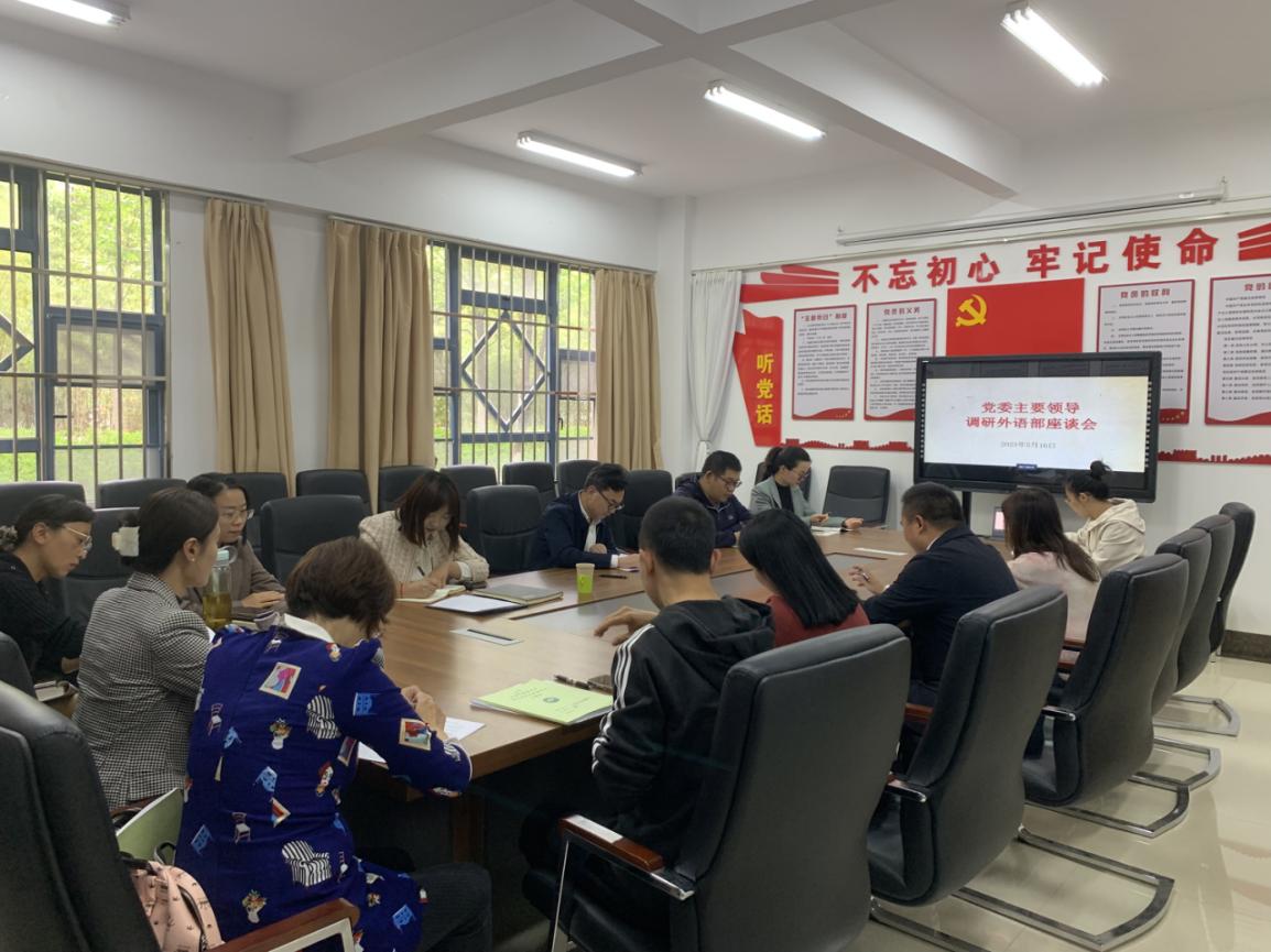 云中讯(通讯员 张金涛)5月16日下午,学校党委书记邱勇深入外语部开展调研座谈会,党办工作人员陈晓凤陪同调研。座谈会由外语部黄兴亚主持,外语部全体无课教职工参加。