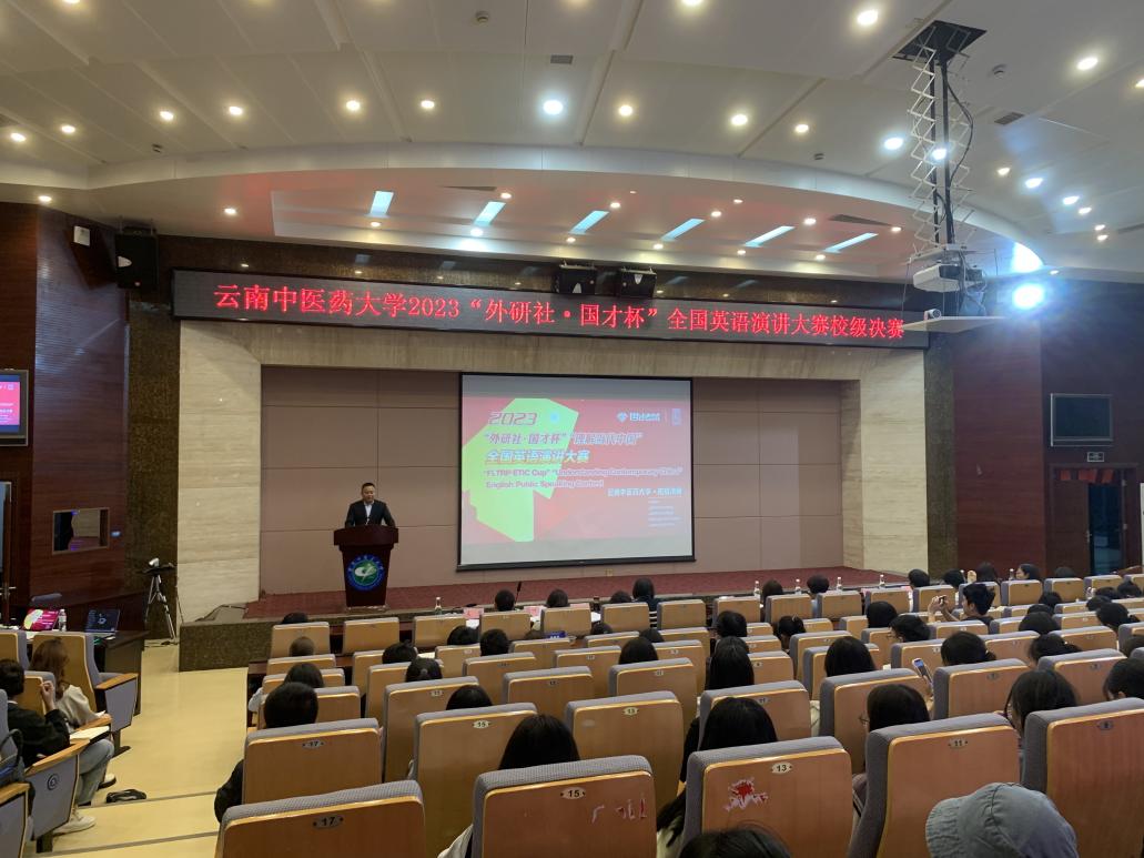 云中讯(通讯员 马行天)为进一步提高我校学生的英语口语表达能力,展现大学生的综合素质和精神风貌, 进一步推动“三进”工作、创新课程思政,深化教育改革、培育外语人才,用英语 讲好中国故事、服务国际传播,10月18日晚,2023“外研社·国才杯”“理解当代中国”全国大学生外语能力大赛云南中医药大学英语演讲校级决赛在呈贡校区翰墨楼一楼报告厅开展。本次选拔赛由 教务处、学生处、校团委、外语部主办,并由外语部承办。国际交流合作处处长孙永林、外语部副主任黄兴亚、外语部教学管理科科长卢佳梅、外语部教师沈月、刘菊琨、周叶函、林静、吴德、孙雯、展淑卿、潘玲华担任本次大赛的评委。